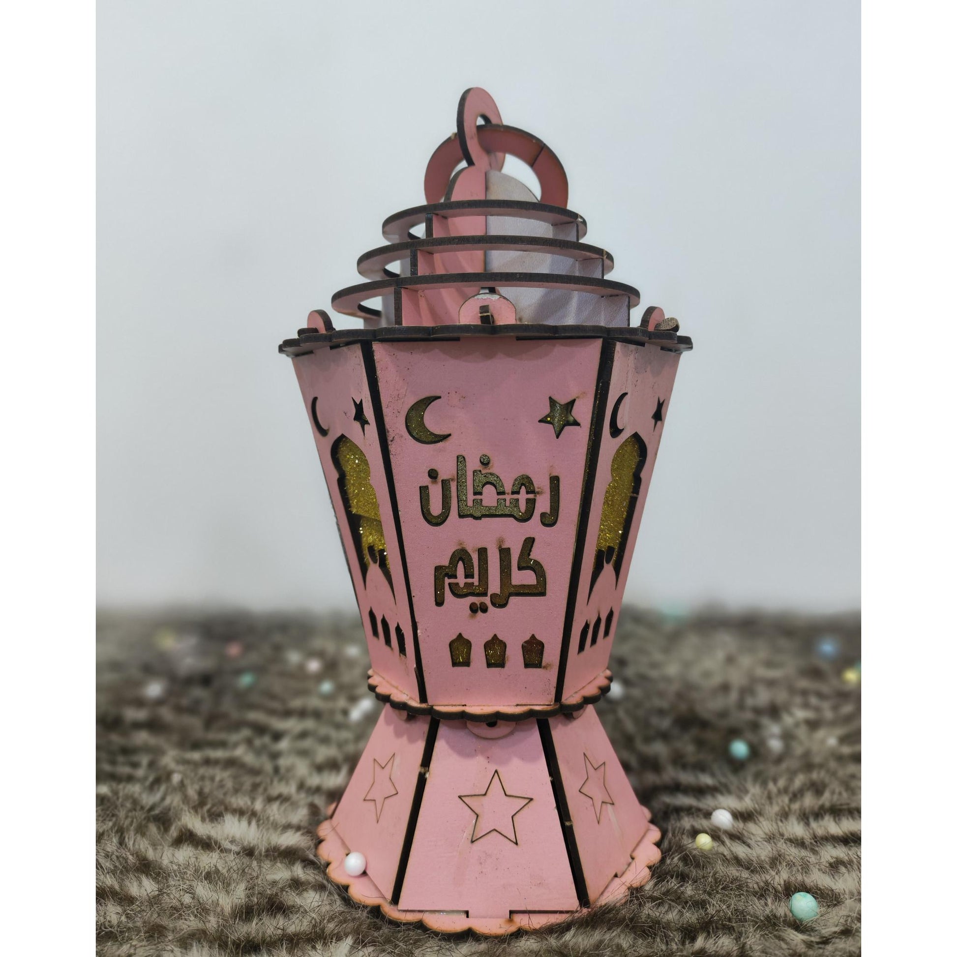 فانوس خشب مضيئ بينك مقاس 25 سم