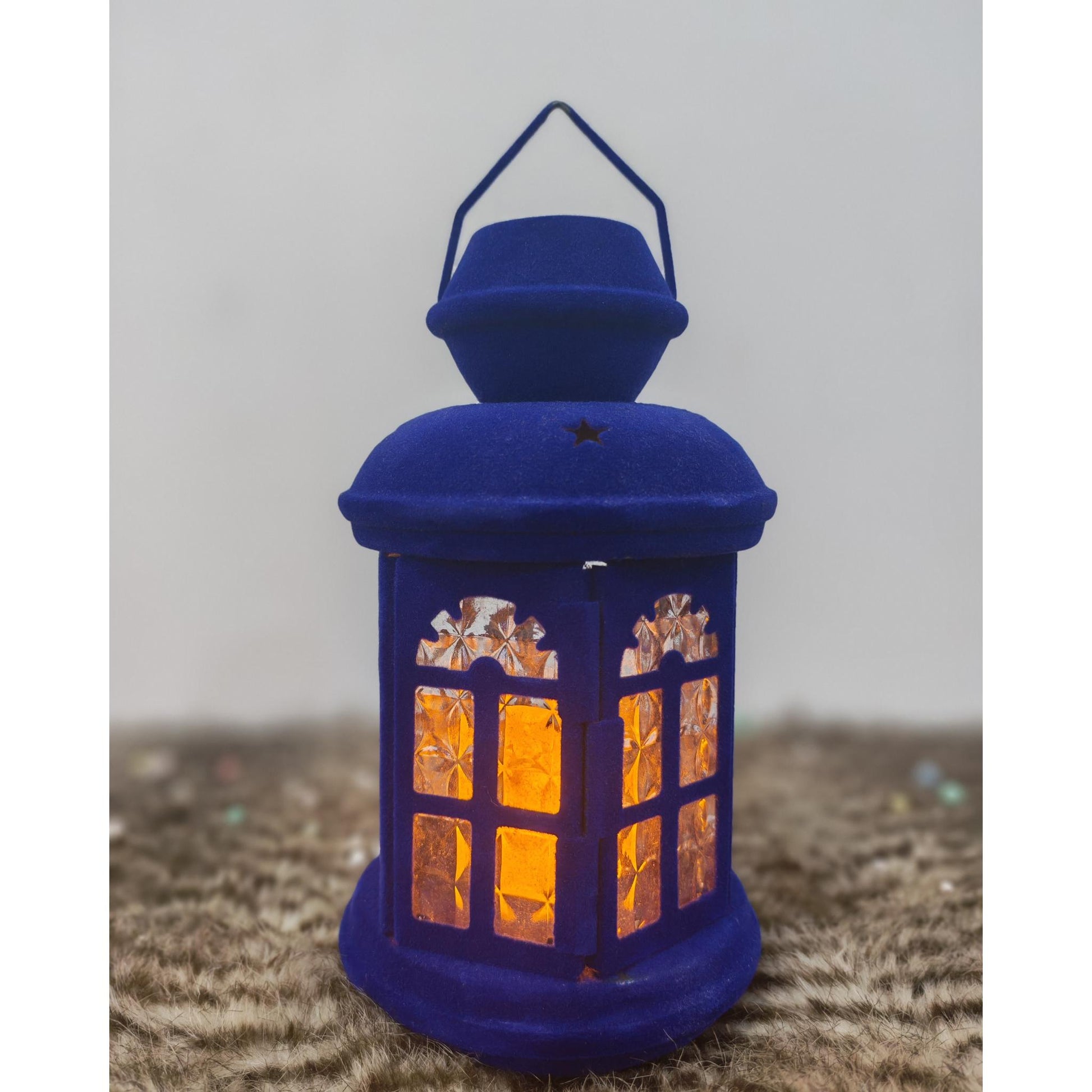 فانوس قطيفة ازرق+شمعه مقاس 25 سم