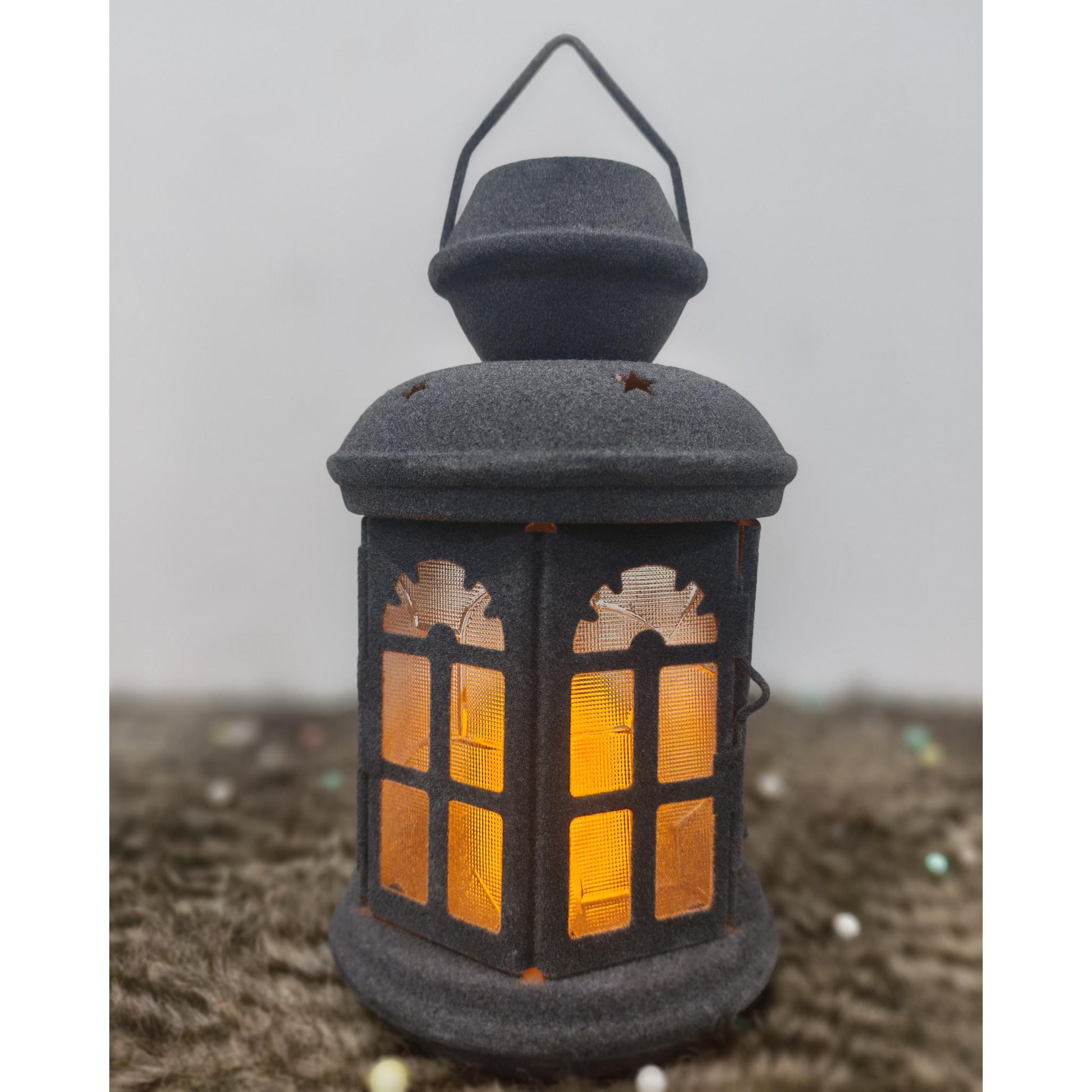 فانوس قطيفة رمادي+شمعه مقاس 25 سم